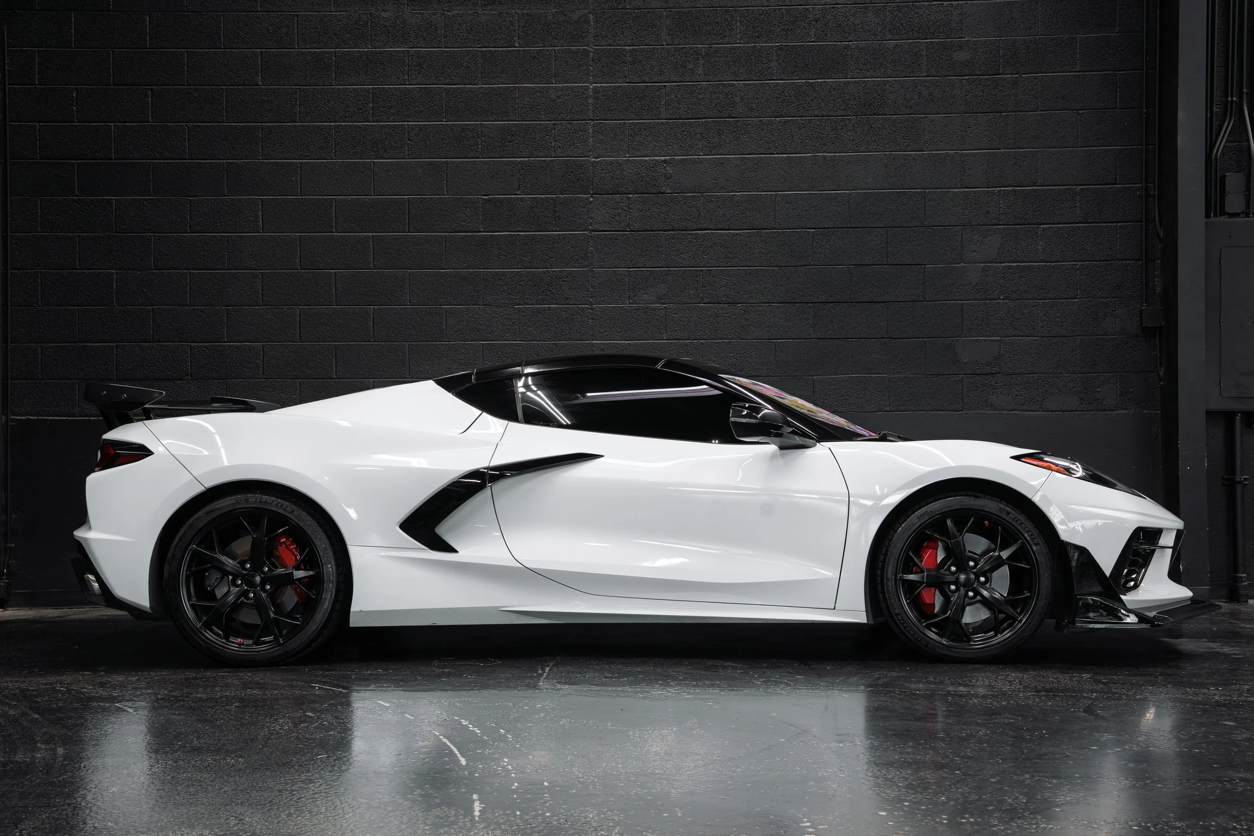 Equipped with a back wing, front splitter, and red interior, the Corvette C8 blends power and style effortlessly. A mid-engine V8 and sharp design make it a standout on any road.