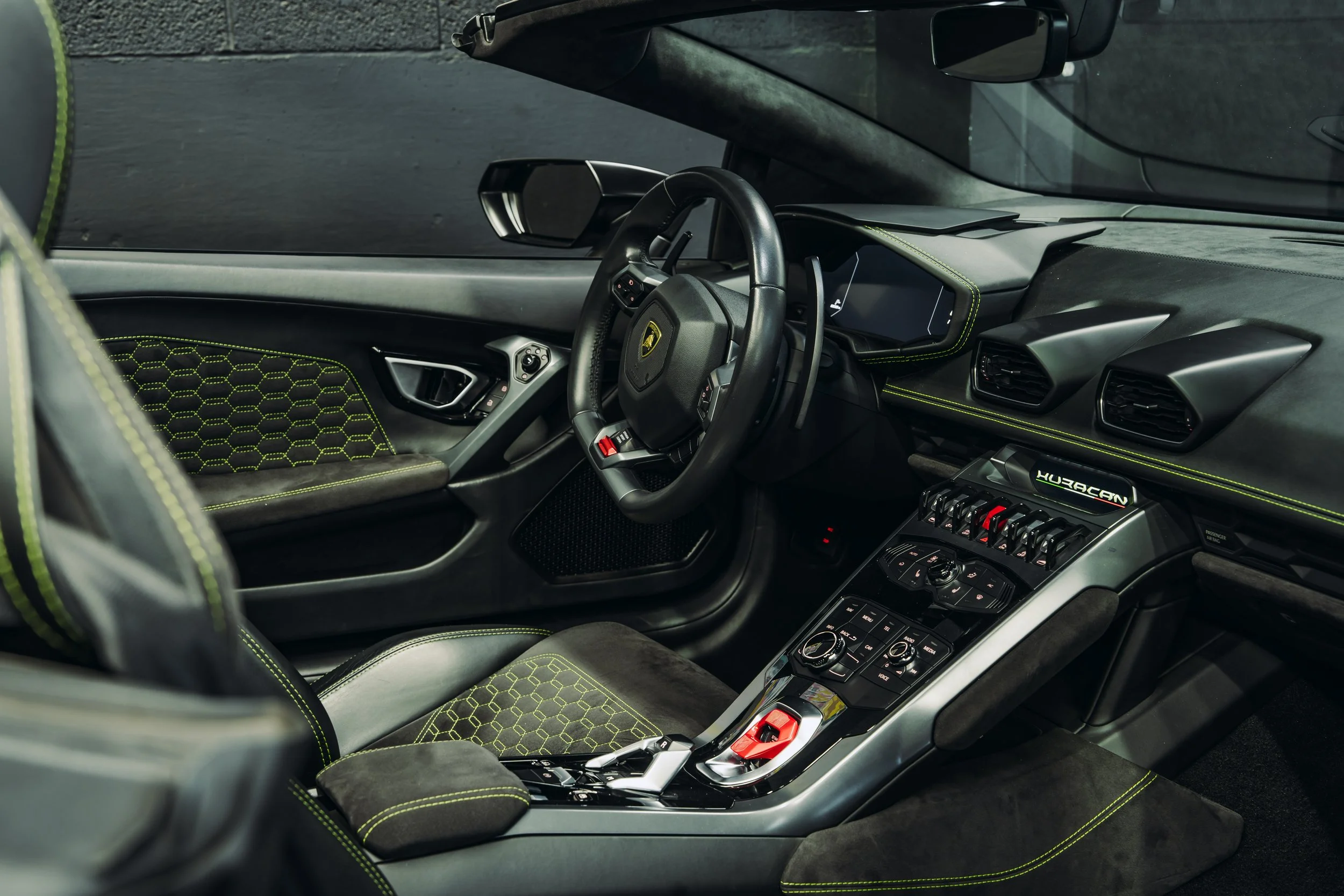 Powered by a V10 and equipped with an aftermarket exhaust and tuned setup, this Huracan Spyder delivers sharper performance and a more aggressive sound. The upgraded interior enhances comfort and finish, creating a balanced mix of speed, control, and presence. Built to perform and to be driven.
